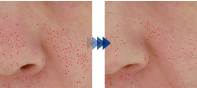 はがれた汚れは、洗顔料とともに洗い流され、毛穴の汚れが一掃されます。この後に使用する化粧水や美容液の浸透がよくなりますので、より一層、お肌の健康を保つことができます。